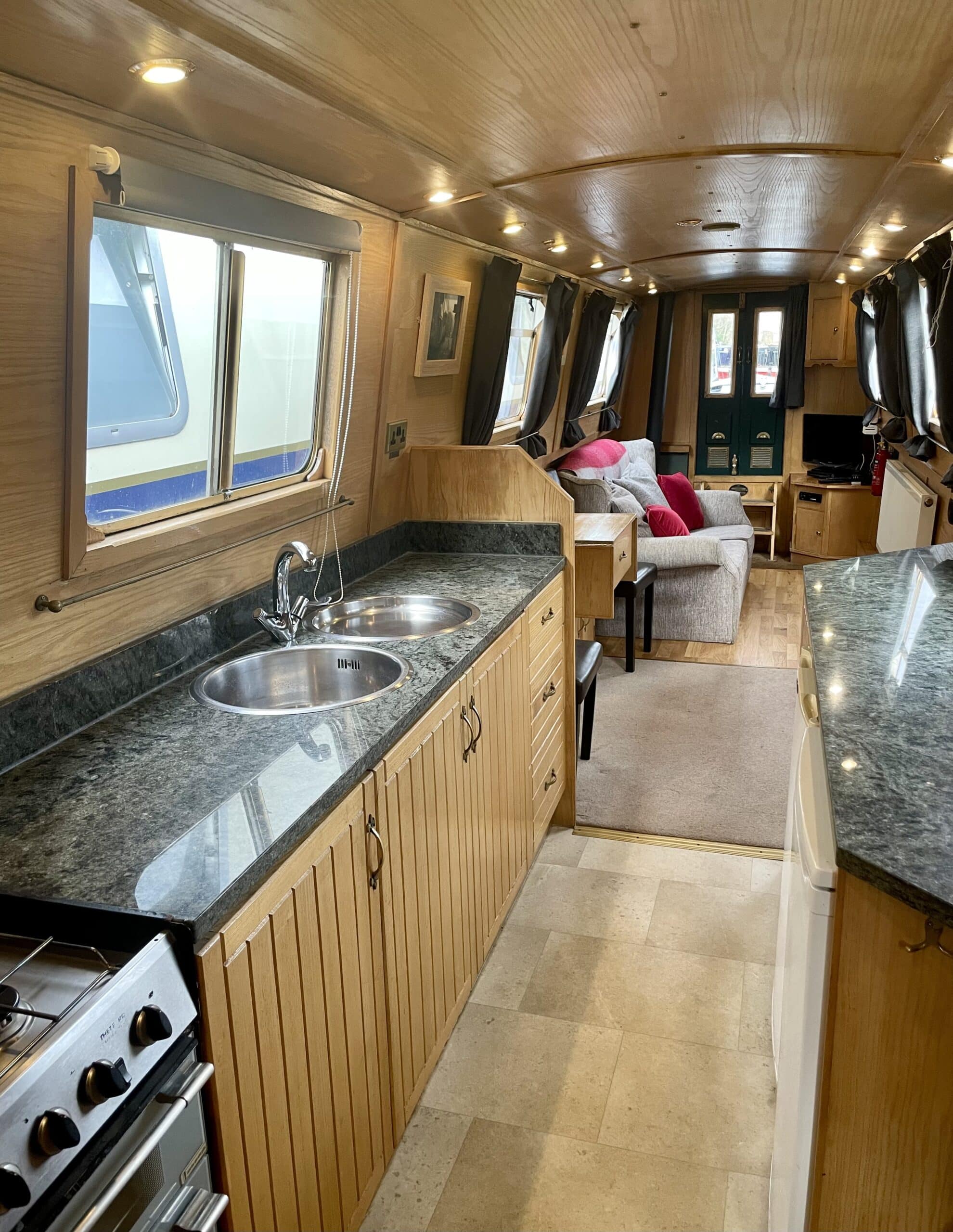 Our narrowboat galley kitchens are well equipped with all the essential items for a self-catering holiday afloat, including an oven, fridge, sink and cooking utensils.