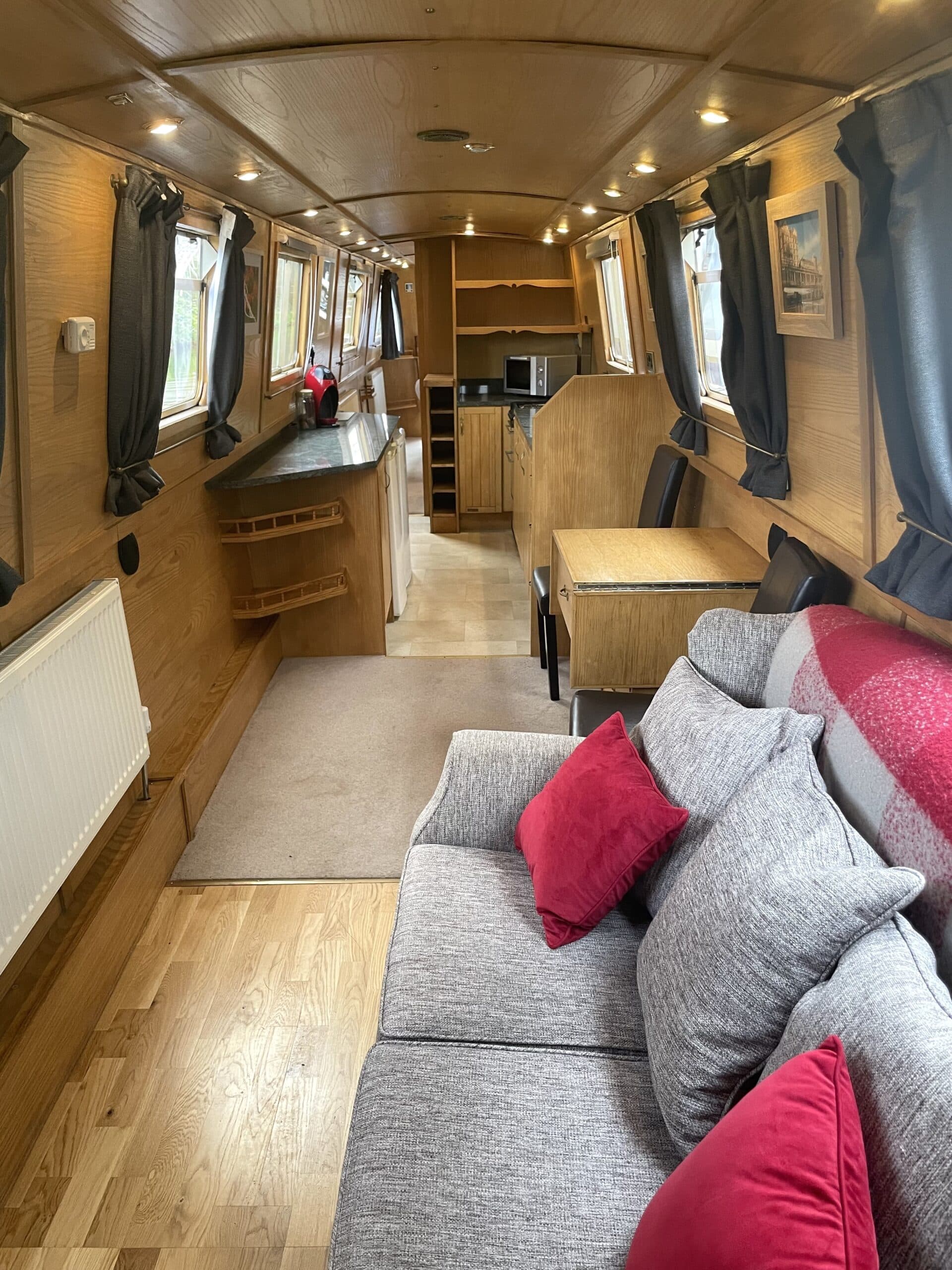 The stern (back) of a ‘cruiser stern’ narrowboat is usually larger and has more open space. Access is easier and there’s space for up to 5 people.