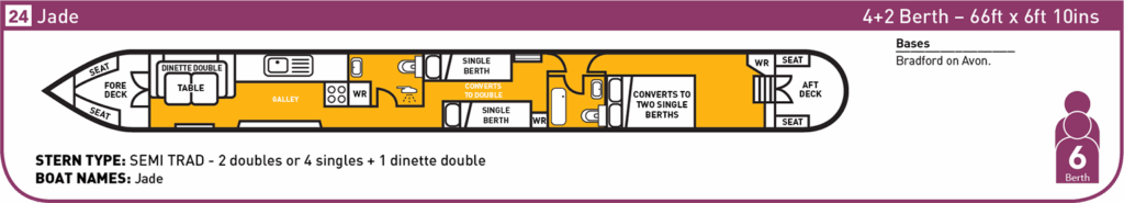 Our Premium 66ft Jade narrow boat offers accommodation for up to six people.