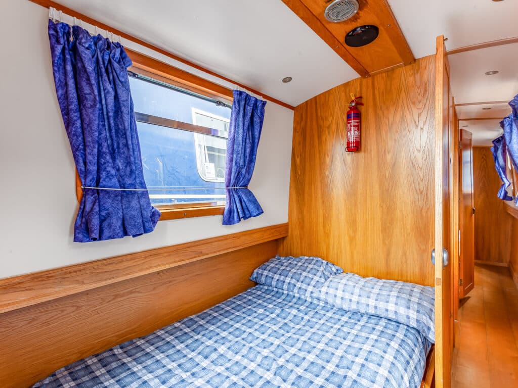 Cabins Three cabins. The two mid cabins can either be configured as a double bed or two single beds with an optional bunk bed above a single. The rear cabin has a double bed or two singles. Bed linen is supplied.