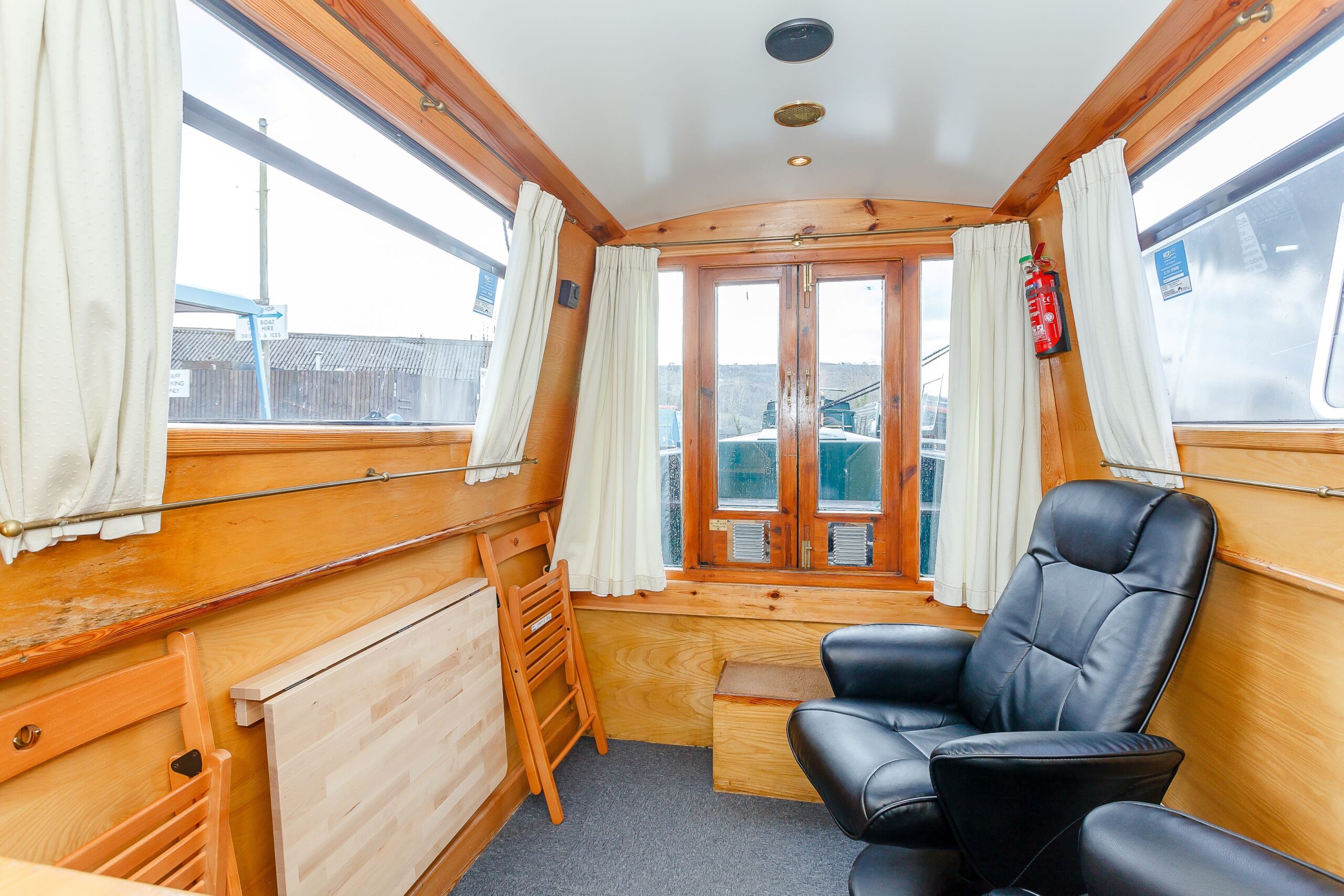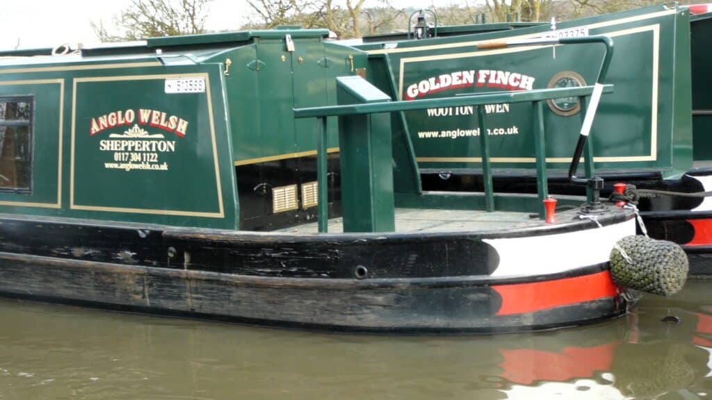 The stern (back) of a ‘cruiser stern’ narrowboat is usually larger and has more open space. Access is easier and there’s space for up to 5 people.